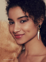 The Alexandria Horn Talisman Drop Earrings by New York jewelry designer Angie Marei feature a striking and sensual etched design inspired by the art deco period and talismans worn by ancient Egyptian royalty. The sleek Onyx Agate stones are beautifully carved and honed by the hands of skilled artisans. Exquisitely handcrafted in 18-karat rose gold. Horn-shaped talismans, also known as the cornicello, Italian for the Devil's Horn, have been worn to protect against the evil eye since ancient history. It is believed that no danger could ever touch the wearer if it were worn as an amulet.