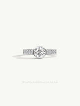 - Shown with a 1.00-Carat round brilliant-cut white diamond center stone