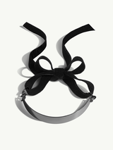 The Roman Choker Necklace by Angie Marei features a sleek bar of blackened sterling silver to luxuriously adorn the neck. A romantic set of lush velvet ribbon ties add an elegant yet provocative statement for any occasion. Swap the colored ribbons to match your look.