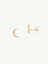 Celestial Moonbeam Stud Earrings With Pavé-Set White Diamonds, 0.10 CTW