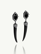 The Alexandria Onyx Horn Earrings by Angie Marei features a striking sensual design inspired by the art deco period and talismans worn by ancient Egyptian royalty. Exquisitely handcrafted and detailed, our earrings are made from finely detailed and blackened sterling silver, black onyx gemstones. Each stone is beautifully hand-carved and polished from natural raw gemstone by highly skilled artisans.