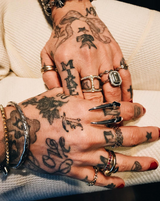 Gold vermeil is created using a thick layer of genuine gold plated over sterling silver, while black rhodium plating gives jewelry its striking dark, mirror-like sheen. Both finishes are achieved through a meticulous electroplating process that requires skill and precision to ensure an even, luminous coating.