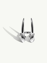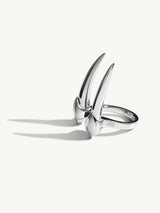 The Damian Brevis Horn Talisman Ring by Angie Marei, handcrafted in luxurious high-polished sterling silver features a powerful and sensual sculptural horn design inspired by amulets and talismans worn by royal ancient Egyptians.