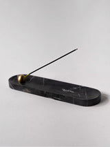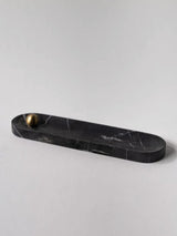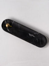 The sculptural elegance of our Tarabiza incense holder brings serenity and peace to your living spaces. Handcrafted in Turkey from black marble, this exquisite piece features a brass ball incense holder, achieving a perfect balance of elegance and simplicity. The soothing aroma of the incense is released gently, enhancing your environment.
