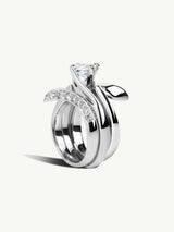 Inspired by ancient Egyptian artistry, this bridal set of three stackable rings has been meticulously crafted to evoke the graceful form of a twisting serpent—an eternal symbol of immortality. Viewed from the side, the silhouette reveals a delicate flower in bloom, a fusion of sculpture and jewelry that captures the sensual essence of femininity and whispers of quiet seduction.