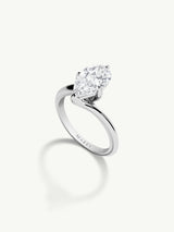 The Pythia Twist Pear-Cut Diamond Solitaire Engagement Ring by Angie Marei is a luminous masterpiece designed to make any woman feel like a goddess. A brilliant pear-cut white diamond radiates from its setting of sumptuous platinum, exuding timeless elegance.