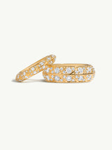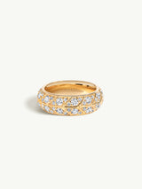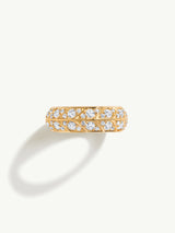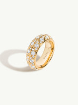 The Palmyra Eternity Band, created by Angie Marei, is an exquisite piece of jewelry made from 18-karat yellow gold and studded with sparkling brilliant-cut white diamonds. The inspiration for the design comes from Ancient Egyptian architecture and desert palm trees, which are reflected in the textures and negative spaces of the intricate details. The elaborate design is sure to become an heirloom piece that generations of admirers will cherish. The ring can be worn as a wedding band or as a statement piece.