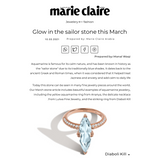 Aquamarine meaning "water of the sea" in Latin, is a brilliant aqueous gemstone that shimmers in the light evoking the spirit of the sea.