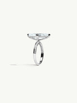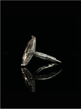 The Marei Diamond Halo Engagement Ring by jewelry designer Angie Marei, showcases a stunning brilliant-cut Marquise White Aquamarine jewel enthroned in an Art-Deco-inspired claw setting. Handcrafted from platinum and pavé-set brilliant-cut round white diamonds, this gorgeous piece will dazzle and delight the senses with its hidden halo of sparkling white diamonds creating a sparkling effect around the centerpiece gemstone.