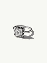 Rising like a modern-day pyramid, The Ascension Engagement Ring embodies strength, clarity, and divine elegance. At its heart, a luminous princess-cut white diamond takes center stage, its sharp geometry and brilliance symbolizing the soul’s journey toward higher realms of wisdom and light.