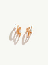 Crafted in 14K yellow gold, these elegant J-hoop earrings feature a modern stacked row design that gives the illusion of three delicate hoops in one. Two of the hoops are adorned with a row of natural pavé-set diamonds, totaling 0.33 carat, adding a refined touch of sparkle and sophistication. Striking the perfect balance between everyday wearability and statement luxury. Lightweight yet luminous, these earrings elevate any look with their effortless elegance and timeless allure.