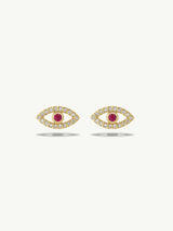 The Evil Eye motif has been cherished across cultures for millennia as a symbol of protection from envy, negative energy, and unforeseen misfortune. Crafted in radiant 14-karat gold and expertly set with vibrant rubies 'irises' and pavé-set white sapphires, each pair is both a striking adornment and a meaningful talisman.