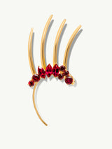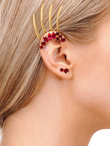 Isadora Spiked Ear Cuff Hair Comb With Red Garnets In 18K Yellow Gold