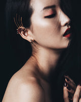 The Isadora Red Garnet Spiked Ear Cuff by Angie Marei is a masterpiece of fine craftsmanship, exquisitely handcrafted in luxurious 18-karat yellow gold. Featuring vibrant, natural red garnet gemstones, this striking design combines bold elegance with historical inspiration. The dazzling garnets are set alongside elongated, sculptural gold spikes, reminiscent of traditional Japanese Kanzashi hairpins—ornamental accessories believed to ward off evil spirits and serve as discreet self-defense tools.