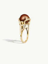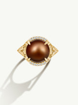 Isis Goddess Ring With Japanese Akoya Chocolate Pearl & Pavé-Set Brilliant White Diamonds In 18K Yellow Gold