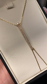 The Aracelis Diamond Body Chain Necklace by Angie Marei is a sensual fusion of minimalist design and wearable sculpture. Sparkling brilliant-cut round white diamonds are pavé-set on a sleek 18-karat blackened gold pendant, suspended from a solid gold chain that gracefully wraps around the body. Effortlessly striking, this radiant piece is perfect styled with a bikini or a plunging neckline—for a look that exudes elegance and allure.