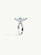 The Marei Diamond Halo Engagement Ring by jewelry designer Angie Marei, showcases a stunning brilliant-cut Marquise Blue Aquamarine jewel enthroned in an Art-Deco-inspired claw setting. Handcrafted from platinum and pavé-set brilliant-cut round white diamonds, this gorgeous piece will dazzle and delight the senses with its hidden halo of sparkling white diamonds creating a sparkling effect around the centerpiece gemstone.