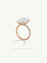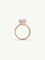As its name suggests, Suma, the Arabic word for "moonlight" and "beauty," the fiercely feminine Suma Engagement Ring by designer Angie Marei is the ultimate embodiment of striking beauty featuring an exquisite brilliant cut Oval-Shaped white diamond mounted in a classic four-claw-prong 18-karat rose gold and pavé diamond setting. Glittering white diamond accents are skillfully handset adorning each prong and band. And a single sparkling white diamond is secretly set beneath the center stone touching the wearer's skin. A romantic element of surprise and symbol of love.