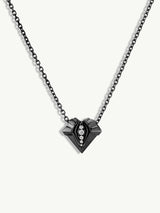 The Alexandria Pendant Necklace by Angie Marei features a gorgeous art deco-inspired pendant with pavé-set brilliant white diamonds on a gleaming round cable chain handcrafted in 18-karat blackened gold. In this piece, Marei takes inspiration from the Step Pyramid of Djoser of Ancient Egypt that ascended upwards from the ground towards the sky, symbolizing a stairway to heaven.