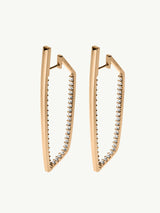 Anything but innocent, our Lilith White Diamond Studded Hoop Earrings by designer Angie Marei offer a bold and fierce reinterpretation of the classic hoop. Meticulously handcrafted in 18-karat yellow gold and polished to a mirror-like finish, these earrings feature a dazzling row of graduated spiked brilliant white diamonds set along the inside, while a sleek knife-edge exterior captures and reflects light from every angle. These stunning earrings are a must-have for Fearless Femme Fatales who dare to make a statement from dawn till dusk.