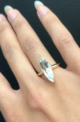 Each gemstone is one-of-a-kind and unique in its size and shape; therefore, it would require a custom-tailored fit for our signature settings. Once the gems are carefully selected, our ring settings are then specially designed and handcrafted for the particular gemstones and our client's unique size measurements. Additionally, some pieces may require rare gemstone sourcing and specialized lapidary stone cutting services.