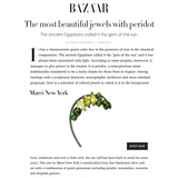 - Natural Precious Gemstones: Marquise-Cut Peridots, Brilliant Round-Cut Green Tourmalines, Brilliant Round-Cut Green Tsavorite Garnets, Brilliant Round-Cut Chrome Diopsides