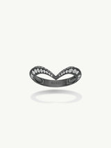 The Dorian Pavé-Set Brilliant White Diamond Ring by Angie Marei is designed to mirror an ocean wave held in suspension. This stunning piece is skillfully handcrafted in blackened 18-karat gold and encrusted with rows of glittering, brilliant-cut pavé-set white diamonds. Visualize the soft waves of the ocean as they bind together with the strength of the human spirit.