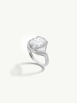 - Shown with a 3.00-carats brilliant-cut cushion-shaped white diamond center stone