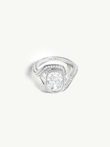 Maat Engagement Ring With Brilliant Cushion-Cut Diamond, Baguettes & Pavé-Set White Diamonds in Platinum