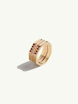 Octavian Triptych Tower Ring With Brilliant-Cut White Diamonds & Rubies In 18K Yellow & 18K Rose Gold - 4.5mm