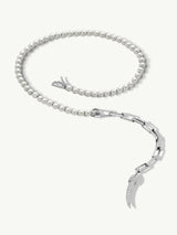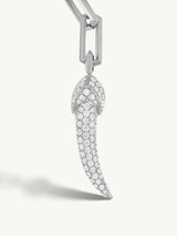 A daring take on the classic pearl necklace, the Damian Horn Talisman Pearl Necklace by Angie Marei is luxuriously handcrafted from 18-karat white gold and pavé-set brilliant-cut white diamonds. The powerful sculptural design was inspired by amulets and talismans worn by the ancient Egyptians.