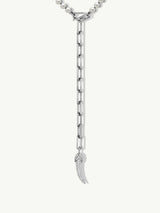 The Akoya pearls on this necklace have a luminous white color with slightly warm overtones that are hand-strung on black silk thread and measure 5mm in diameter. The bold and edgy 4" inch chain extender is designed to be styled in two different ways. The brilliant diamond-encrusted horn talisman pendant can be worn in front or down the back. This luxurious necklace will become a cherished part of your jewelry collection.