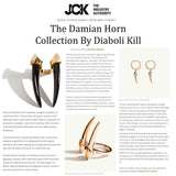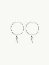 Impeccably handcrafted Damian Horn Talisman Hoop Earrings by Angie Marei featuring horn pendants inspired by amulets and talismans worn by the ancient Egyptians. Handcrafted in luxurious sterling silver.