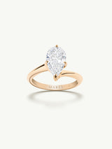 The Pythia Twist Pear-Cut Diamond Solitaire Engagement Ring by Angie Marei is a luminous masterpiece designed to make any woman feel like a goddess. A brilliant pear-cut white diamond radiates from its setting of sumptuous 18-karat yellow gold, exuding timeless elegance.