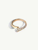 The Pythia Serpentine Twist Pavé White Diamond Wedding Ring by designer Angie Marei features two rows of sparkling brilliant-cut round white diamonds set in 18-karat yellow gold.