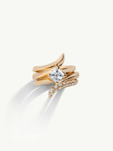 The ancient Egyptian-inspired bridal set of three stackable rings has been thoughtfully designed and created to resemble an elegant twisting serpent, the ancient symbol of immortality. When observed from the side, revealing a silhouette of a flower in bloom - a fusion of sculpture and jewelry that delicately captures the essence of femininity whispers erotic.
