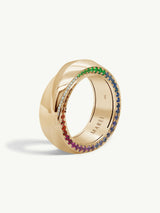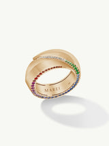 Sahara Oasis Ring With Pavé-Set Brilliant-Cut Diamonds and Rainbow Ombré Sapphires In 18K Yellow Gold, 8mm