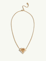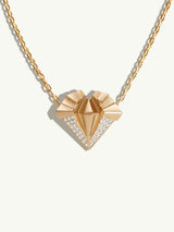 The Alexandria Pendant Necklace by Angie Marei features a gorgeous art deco-inspired pendant with pavé-set brilliant white diamonds on a gleaming cable chain handcrafted in 18-karat yellow gold. In this piece, Marei takes inspiration from the Step Pyramid of Djoser of Ancient Egypt that ascended upwards from the ground towards the sky, symbolizing a stairway to heaven.