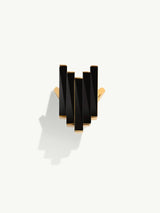The Invidia Black Onyx Column Ring by New York jewelry designer Angie Marei. Exquisitely hand-crafted in 18-karat yellow gold and polished black onyx gemstones. This beautiful architectural ring combines the opulence and glamour of the Art Deco era with the marvelous jewels of the Ancient Egyptian royals.